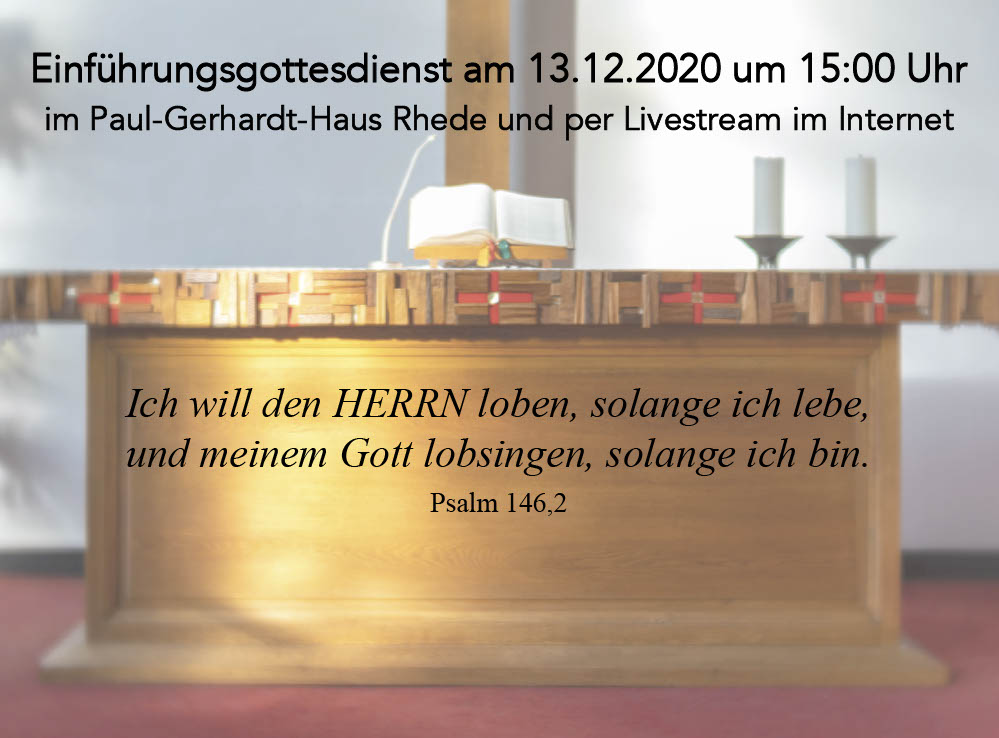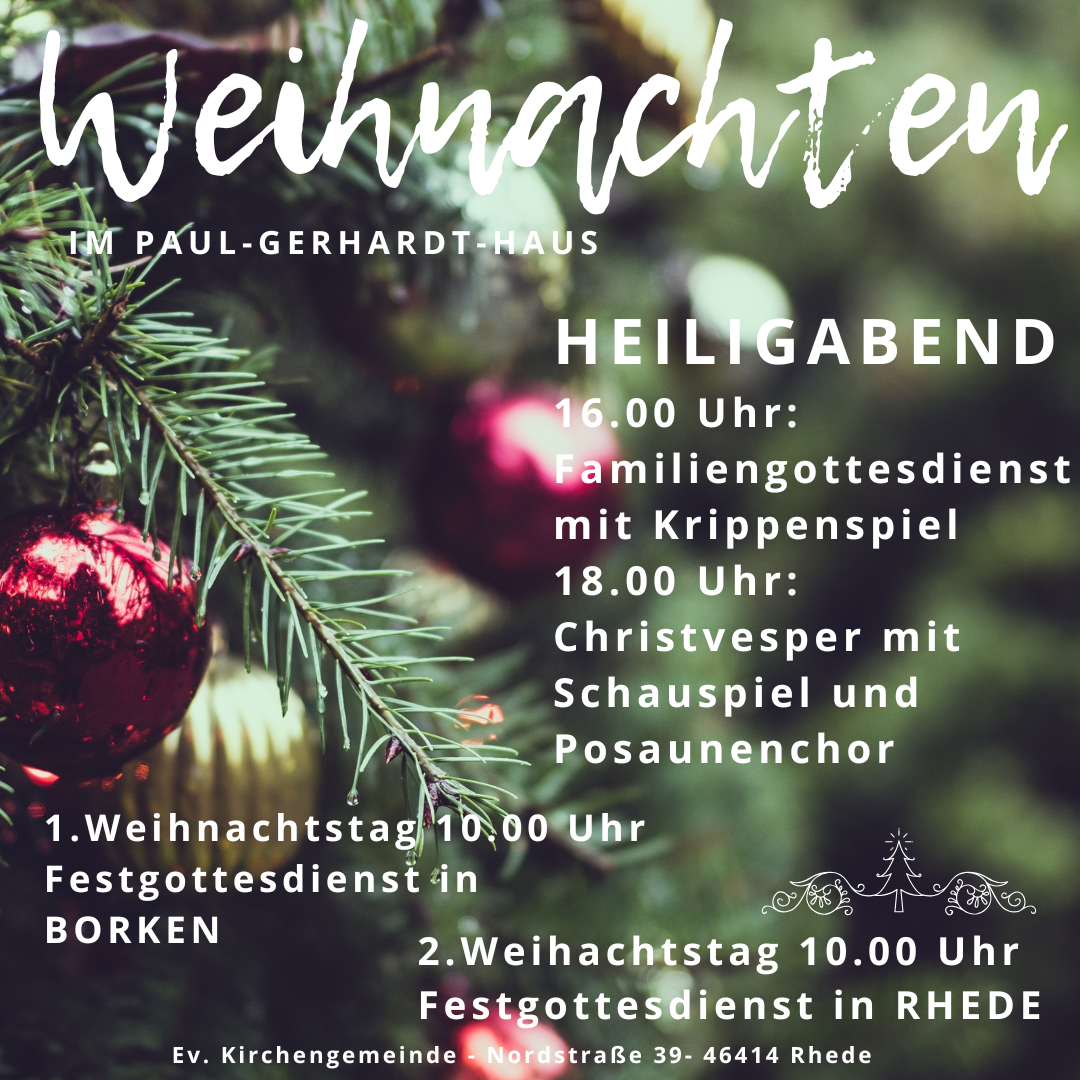 Unsere Evangelische Kirchengemeinde Rhede freut sich, mit vielfältigen Beiträgen auf unserer Homepage mit Ihnen/Euch Weihnachten zu feiern! Zu sehen und zu hören sind einzelne Musikvideos und Wortbeiträge und unser traditionelles Schauspiel für den Heiligen Abend. Außerdem laden wir dazu ein, die Gottesdienste an den Feiertagen als Videoclips zu Hause mitzuerleben. Diese Videoclips werden zu den jeweiligen Gottesdienstzeiten freigeschaltet.