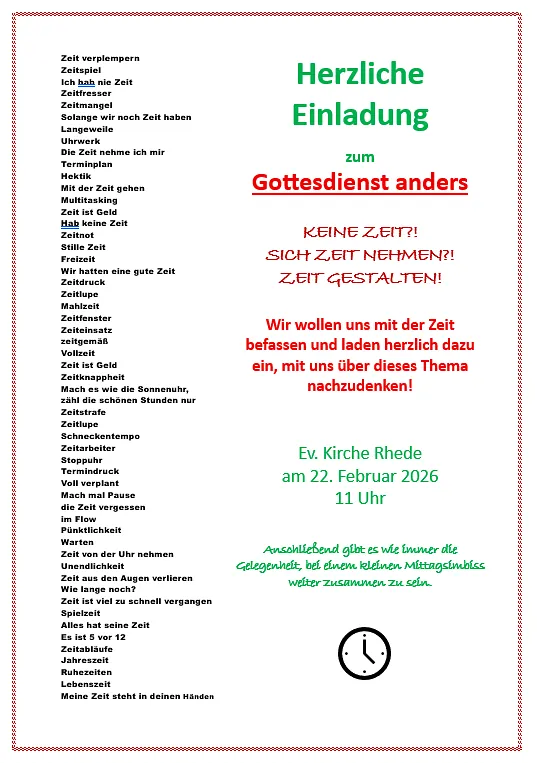Einladung zum "Gottesdienst-anders" zum Thema ZEIT