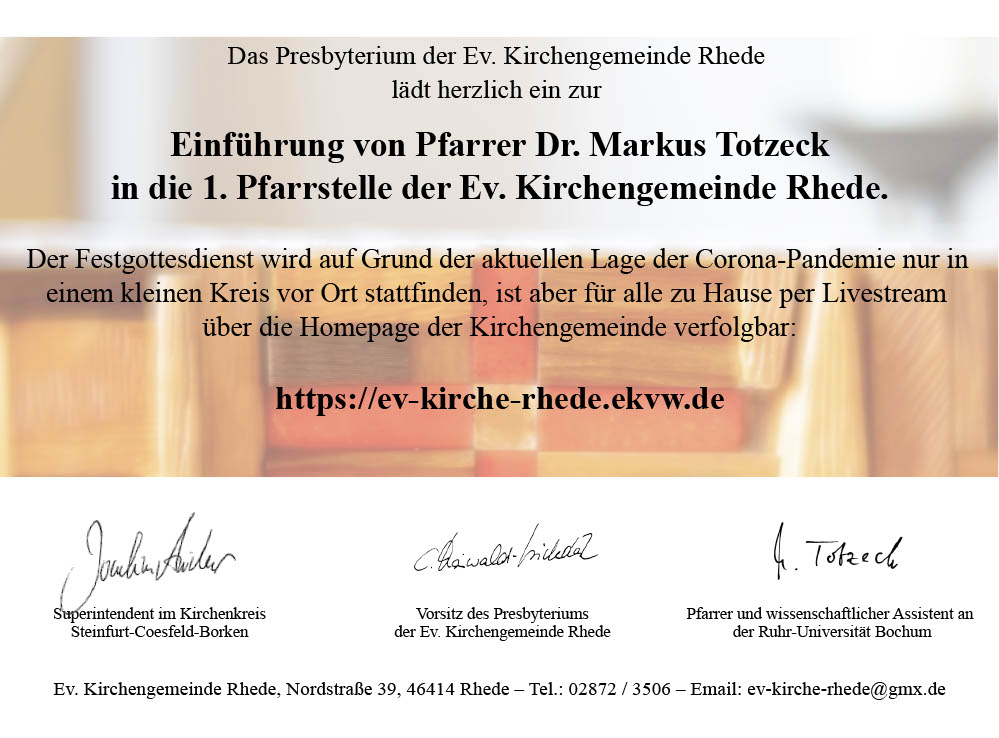 Livestream--Einführungsgottesdienst von Pfarrer Dr. Markus Totzeck