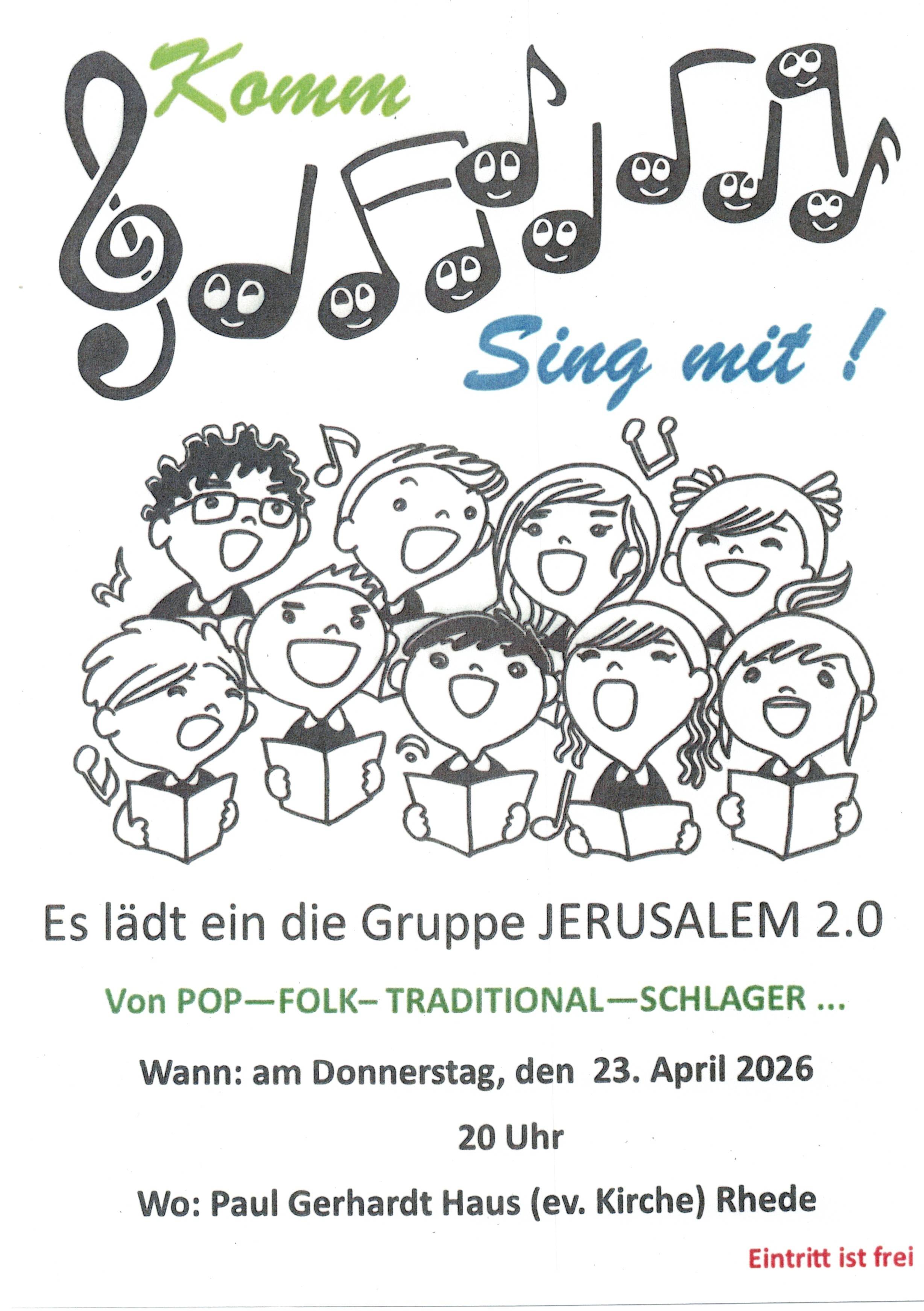 Unter dem Motto Sing mit! wollen wir als Gemeinde und Freunde der Gemeinde endlich wieder miteinander singen.