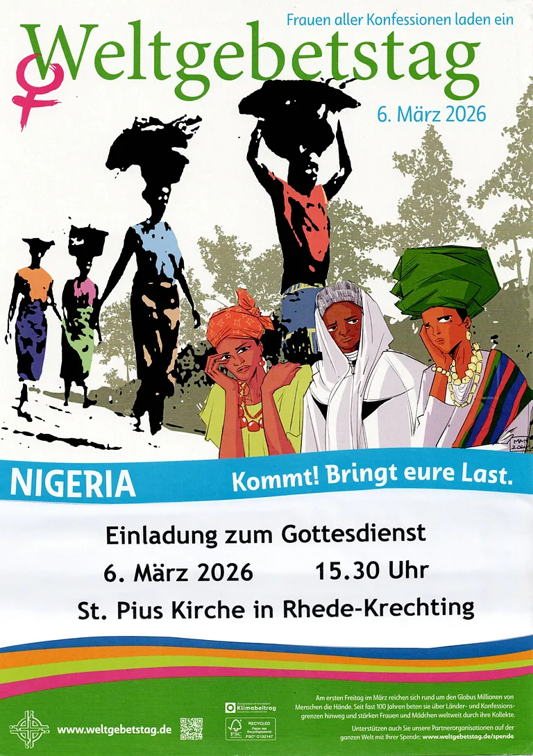 Traditionell laden alle 4 KFD-Gruppen und die evangelischen Frauenhilfe in Rhede zu einem ökumenischen Gottesdienst ein, diesmal am 5. März um 15.30 Uhr in die St. Marienkirche, in Vardingholt.