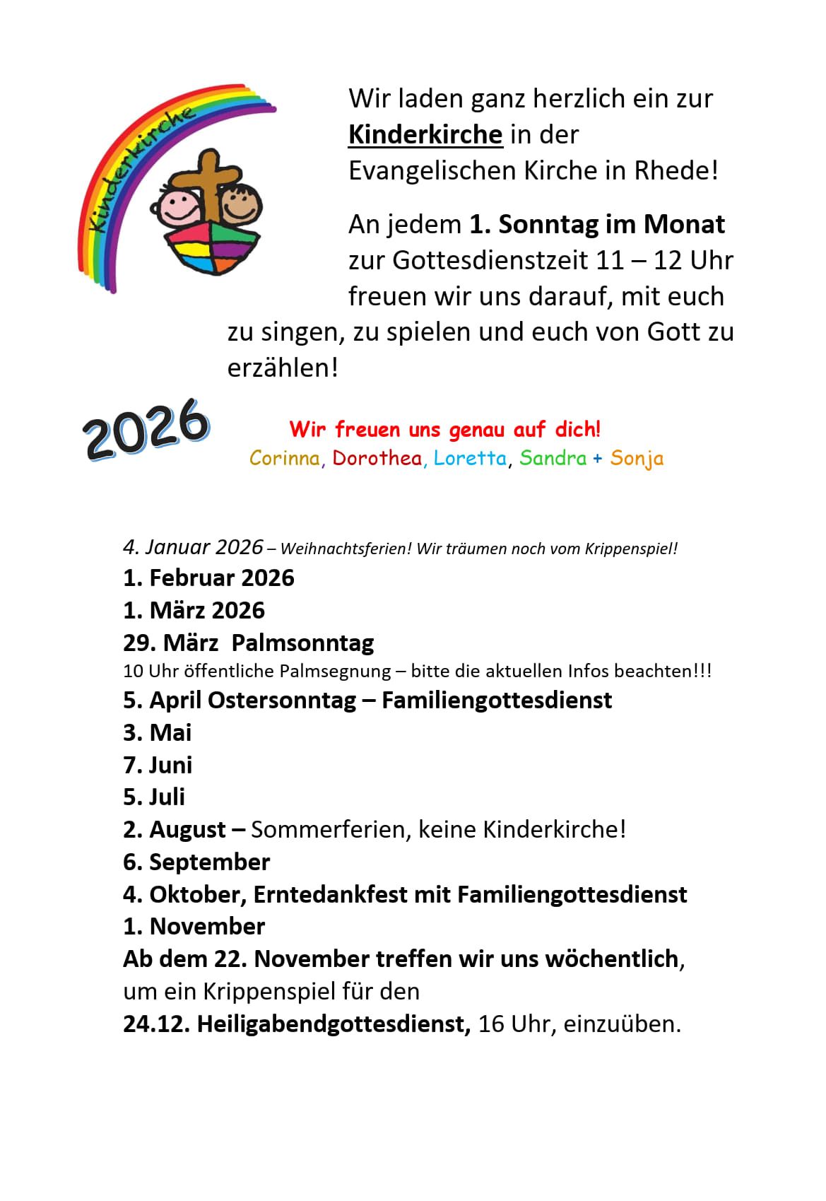 Die Kinderkirche findet am 1. Sonntag im Monat und an Feiertagen parallel zum Gottesdienst statt.